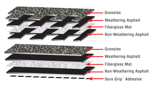 Najwyższej jakości asfalt wykorzystywany w produkcji gontu stosowany jest na przemian z innymi warstwami co znacznie zwiększa odporność mechaniczną